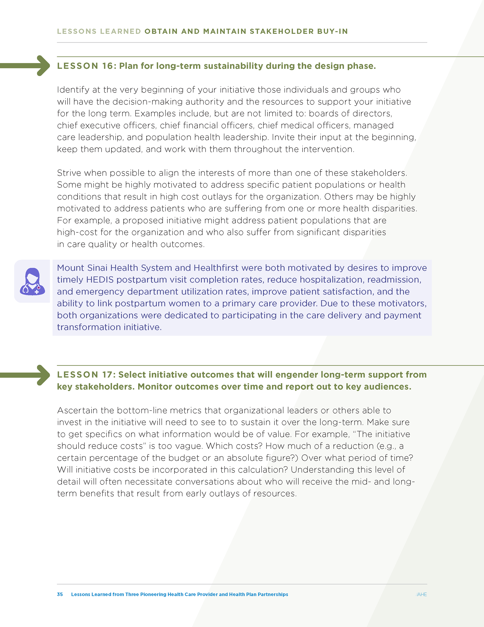 AHE Report: Lessons Learned